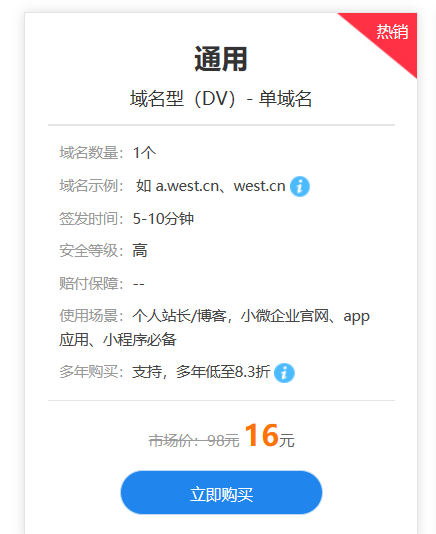 西部数码的SSL证书,去年是1元一年,