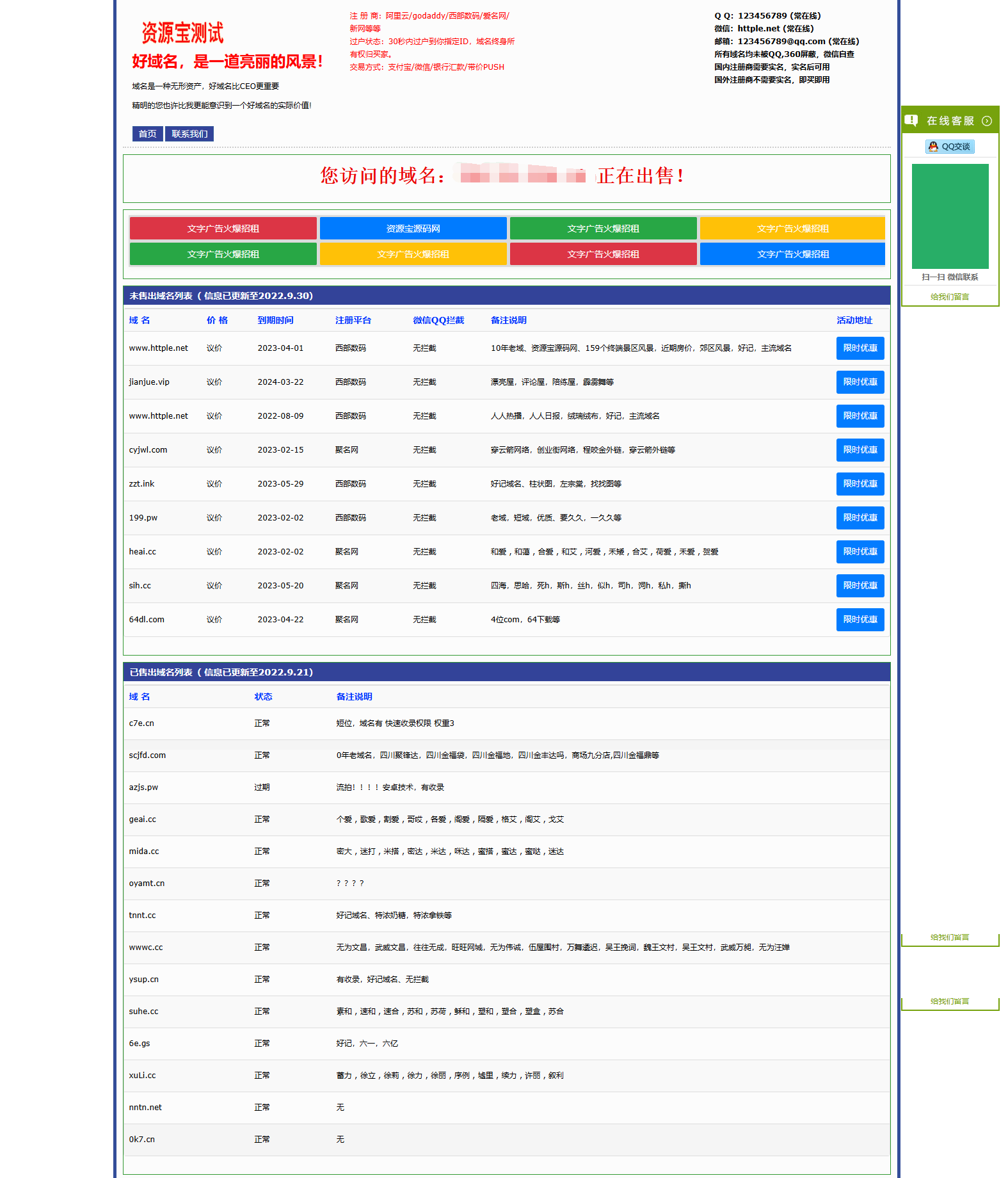 PC+H5双端自适应页面" 是一套专门用于域名展示和出售的系统源代码