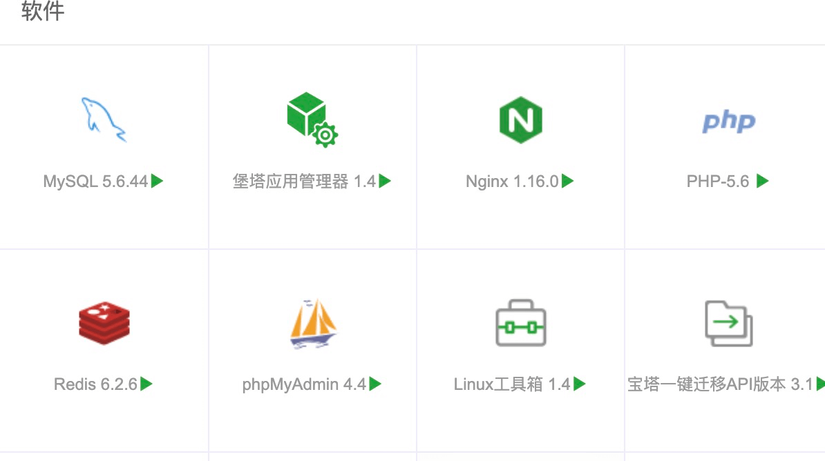 点击首页的 PHP,如果在这里找不到 PHP,去【软件商店】搜索 PHP,找到需要使用的 PHP 软件。