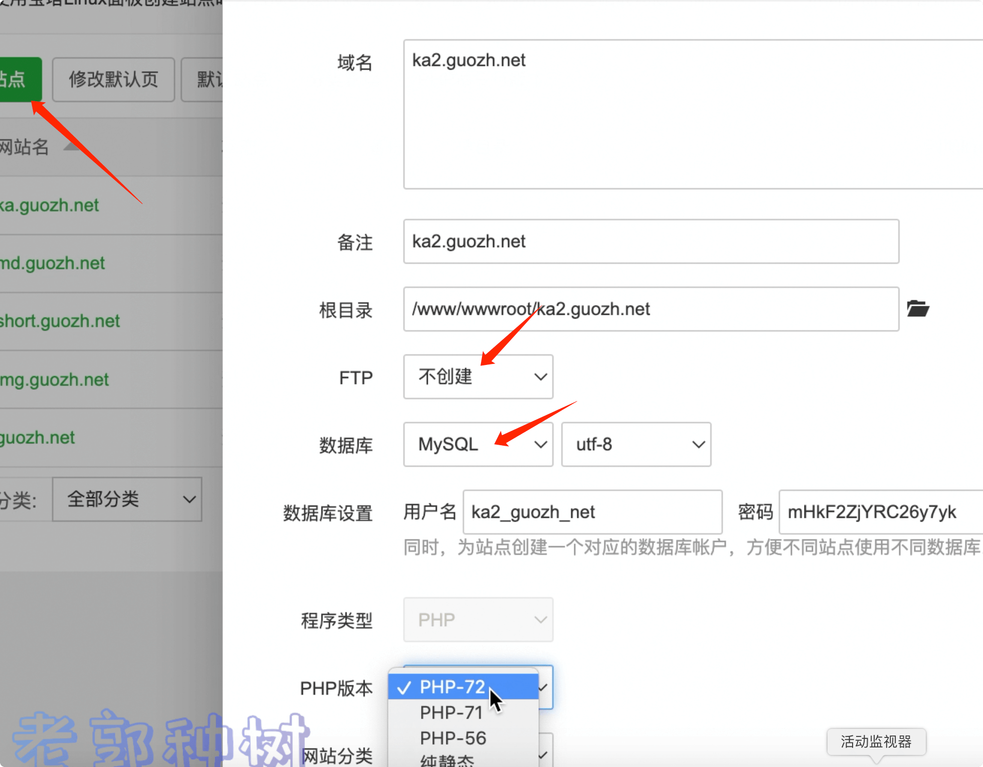 接下来添加一个站点。域名、数据库的填写,如果不懂可以看视频,我在视频中做了详细介绍。