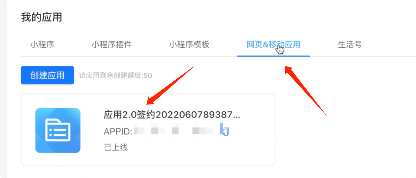 商户 ID 就是刚才的支付宝应用的 APPID 、商户 KEY 是上面申请下来的支付宝公钥,商户密钥是用申请起生成的商户私钥,就是电脑本地的应用私钥,不是支付宝网站的应用公钥,注意别搞错了。