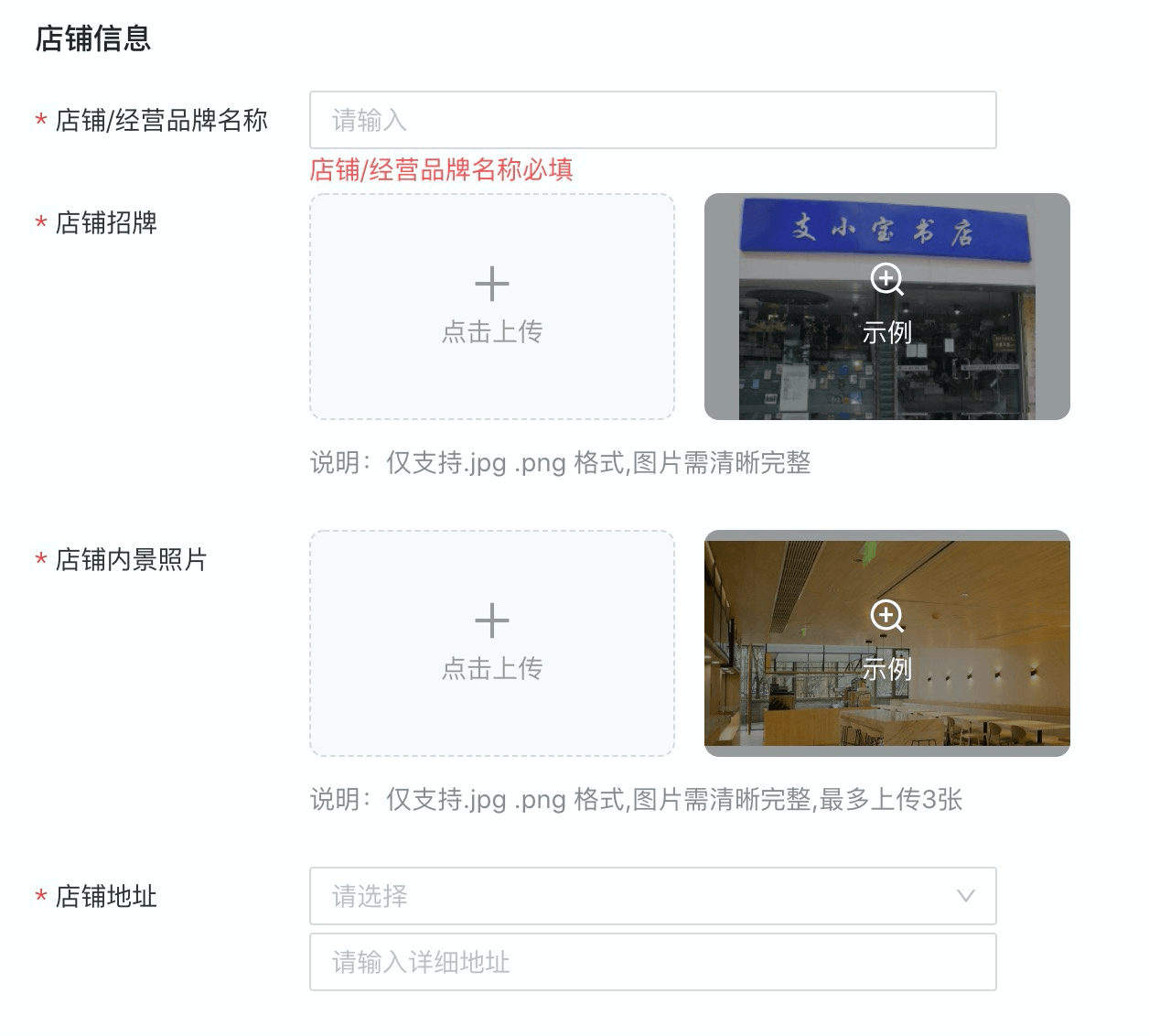 还需要上传两张店铺招牌,店铺招牌和店铺内景照片很好搞定。网上找的图片基本都能通过审核。