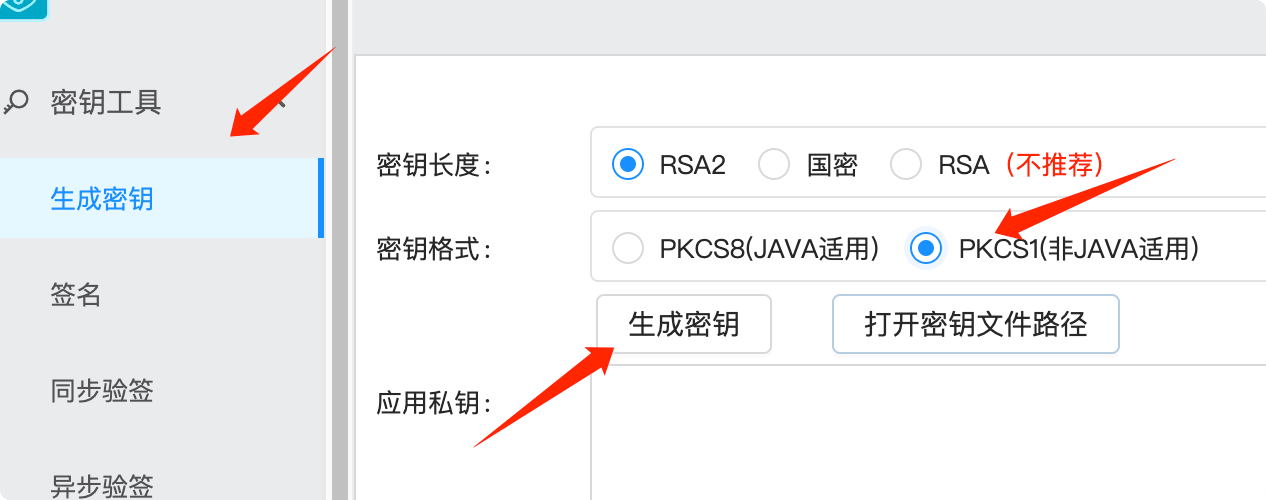 根据自己情况选择密钥格式,如果调用支付宝当面付的项目是JAVA语言,那就选择第一个,如果是 Python 或者 PHP 之类,选择第二个。